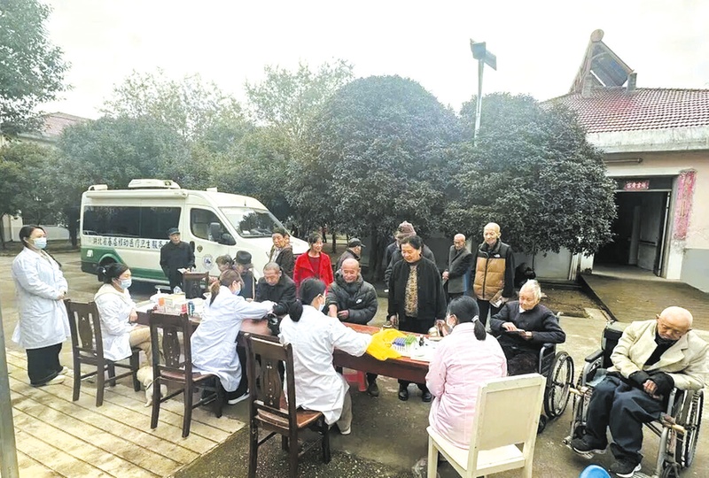 近日,广水市武胜关市卫生院积极组织医护人员和志愿者团队走进辖区福利养老院,开展健康讲座、义诊、免费体检、保洁等慰问活动,开展为老人送去关爱和温暖的实践活动。 (随州日报记者王丽萍供图)